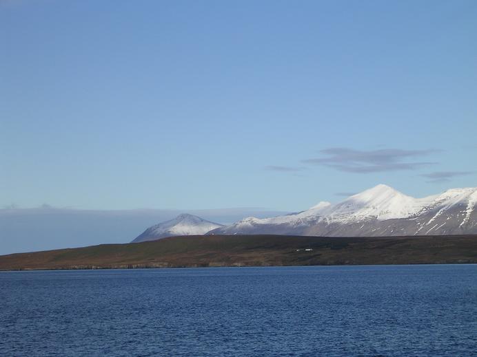 Hrísey with the mountains around Eyjaförður behind
