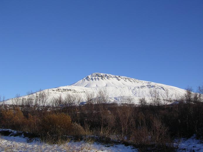 The winterly Vaglaskógur with Vaglafjall behind