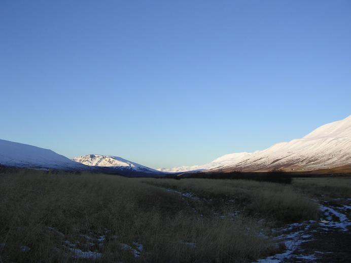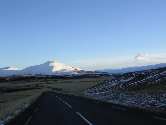 Evening shades on the ringroad in the winterly Fnjóskadalur