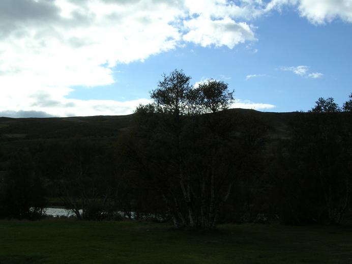Autumn colors and blue sky in the forest of Vaglaskógur
