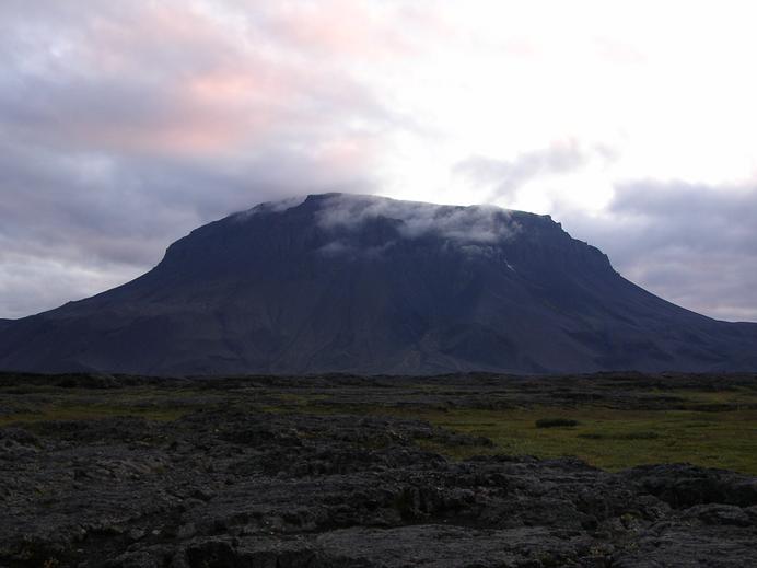 Der Herðubreið am Abend mit rot angeleuchteten Wolken