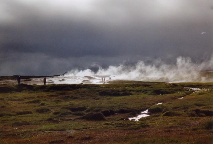 Heißer Dampf und dunkle Wolken bei Hveravellir