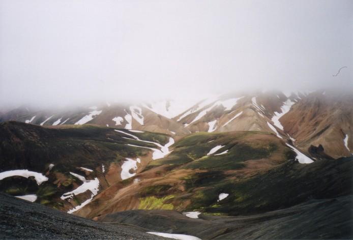 Dichte Wolken verbergen die Schönheiten von Landmannalaugar