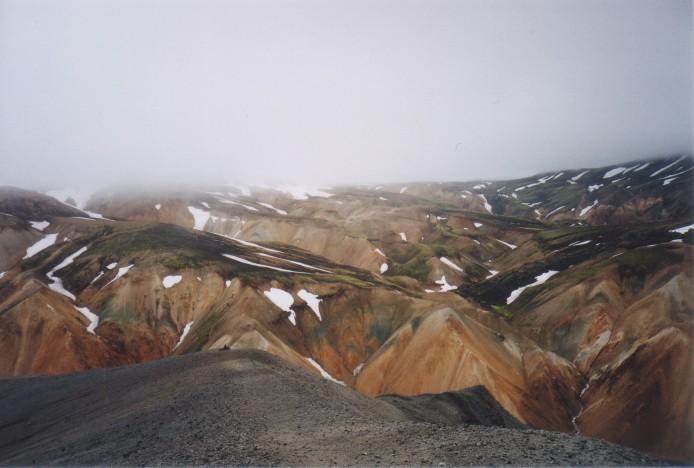 Blick vom wolkigen Gipfel des Bláhnúkur(Landmannalaugar)
