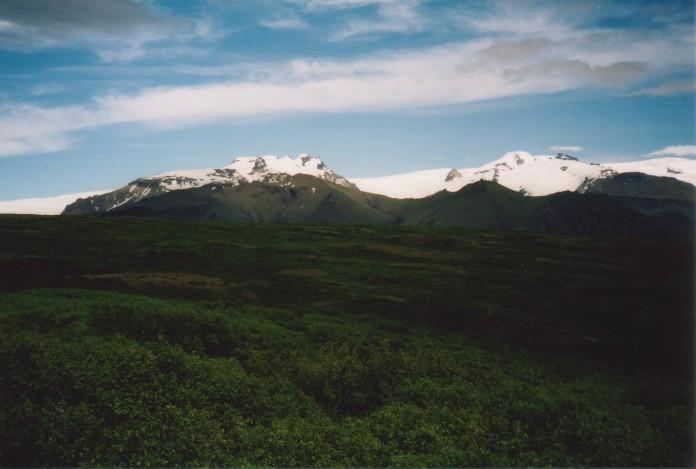 Blick über die Skaftafellsheiði auf den Öræfajökull und den höchsten Berg Islands