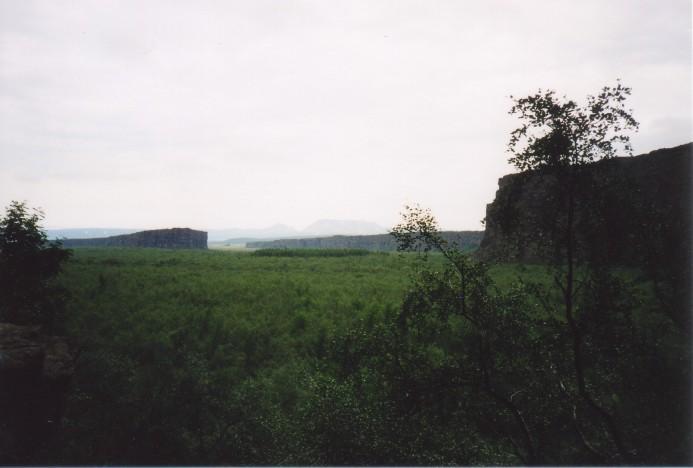 View into the horse-shoe of the canyon at Ásbyrgi