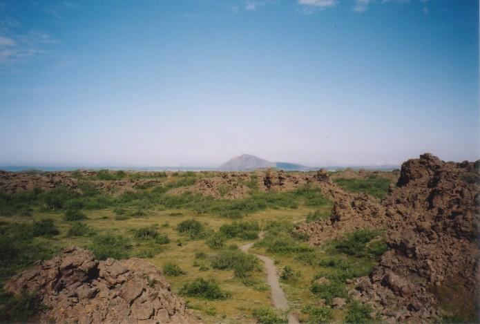 The rocks at Dimmuborgir, Vindbelgjarfjall in the background