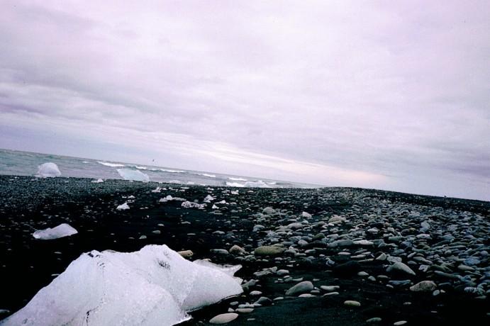 Stranded icebergs at the coast near Jökulsárlón