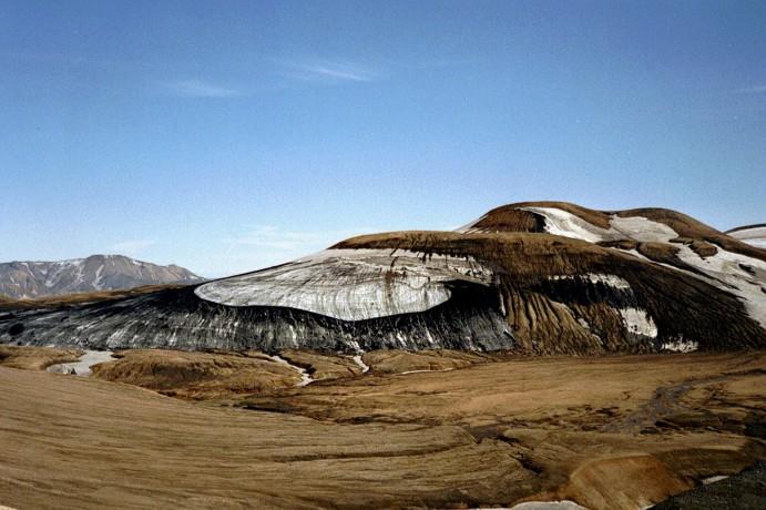 A partially black partially white glacier near Hrafntinnusker