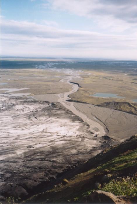 Skaftafellsjökull and the vast "sandur" behind it, seen from above