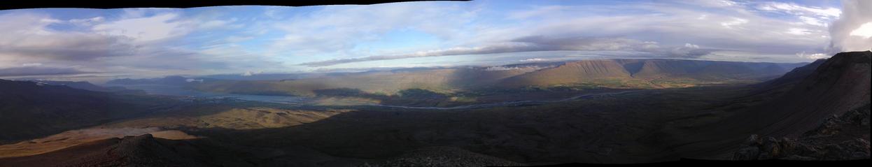 Blick vom Súlur auf Akureyri und den Eyjafjörður.