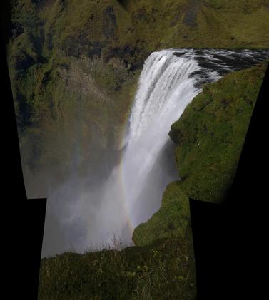 Ungewöhnliche Regenbögen am Wasserfall Skógarfoss.