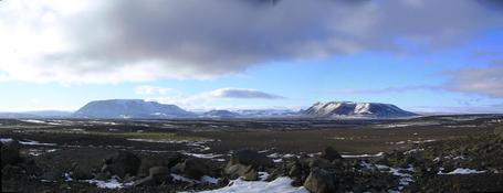 In the middle ofthe Kjölur highlands: Hrfell and Kjalfell with snow.