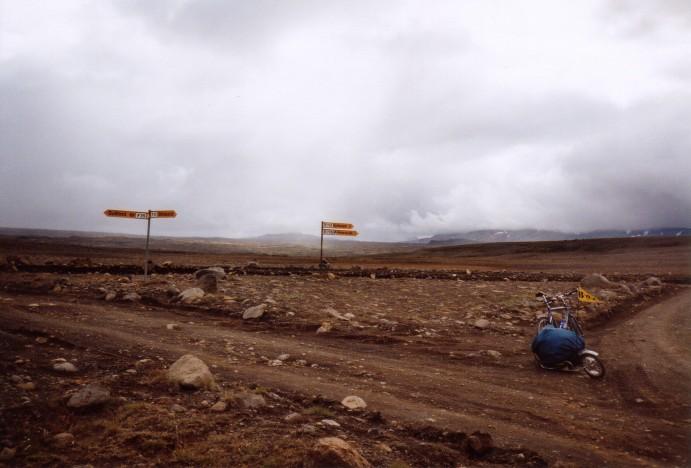 Mein Fahrrad an der Kreuzung bei Hveravellir