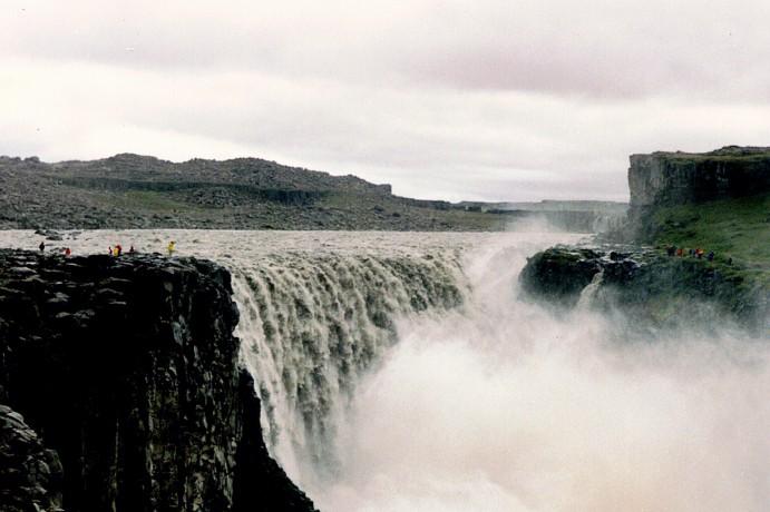 Der Dettifoss, auf beiden Seiten von Touristen belagert