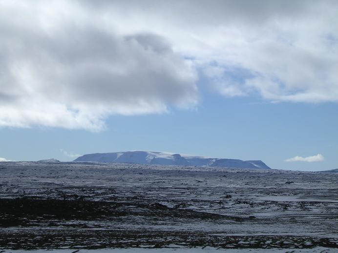 Der verschneite Hrútfell im Kjölur Hochland