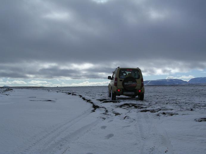 Schnee und Schieben mit dem Auto im Kjölur Hochland