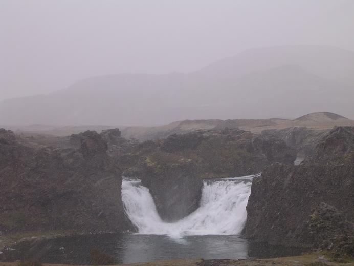 Schneetreiben am Hjálparfoss