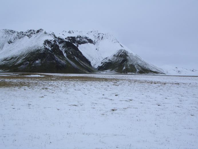 The lake Löðmundarvatn near Landmannahellir with snow all around