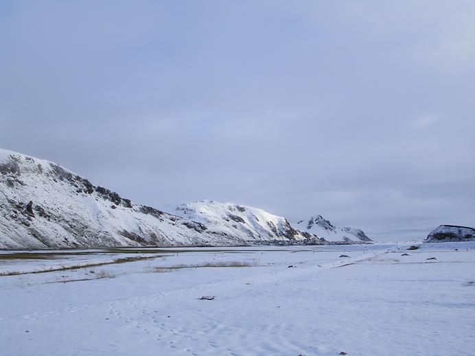 Lichtspiele und Schnee hinter dem verlassenen Zeltplatz von Landmannalaugar