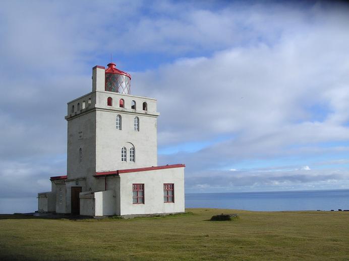 Der Leuchtturm von Kap Dyrhólaey im Sonnenschein