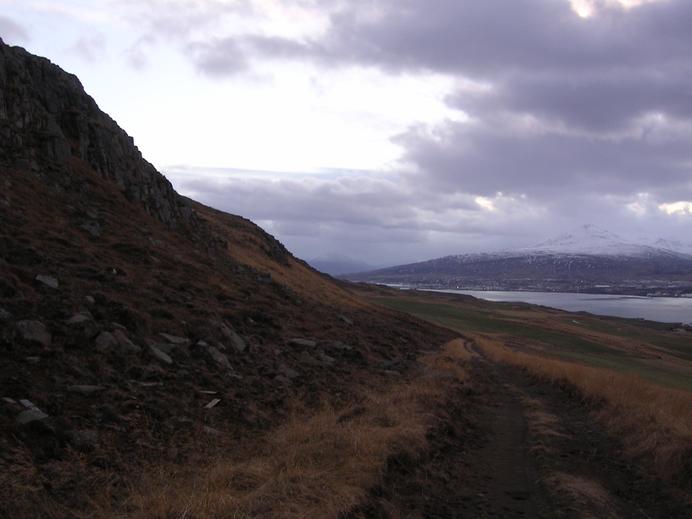 Eine alte Straße schlängelt sich bei Akureyri auf die Vaðlaheiði