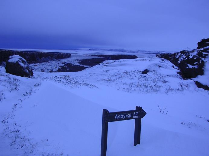 Wanderweg zur Schlucht Ásbyrgi im Winter