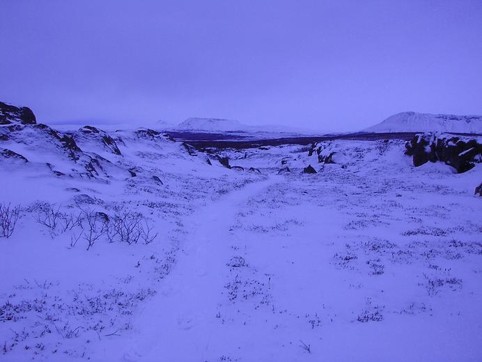 Wanderwege durch die Ásheiði im Winter
