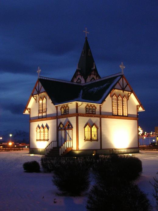 Die Kirche von Húsavík im Dezember