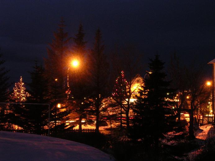 Weihnachtsbeleuchtung in Húsavík im Dezember