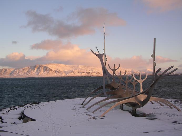 Sólfari mit Esja im Hintergrund