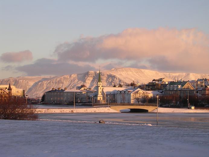 Ein sonniger Dezembertag am Tjörn in Reykjavík