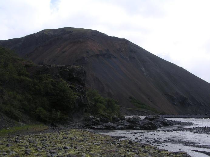 Rhyolith und kleine Birken im Tal der Jökulsá í Lóni