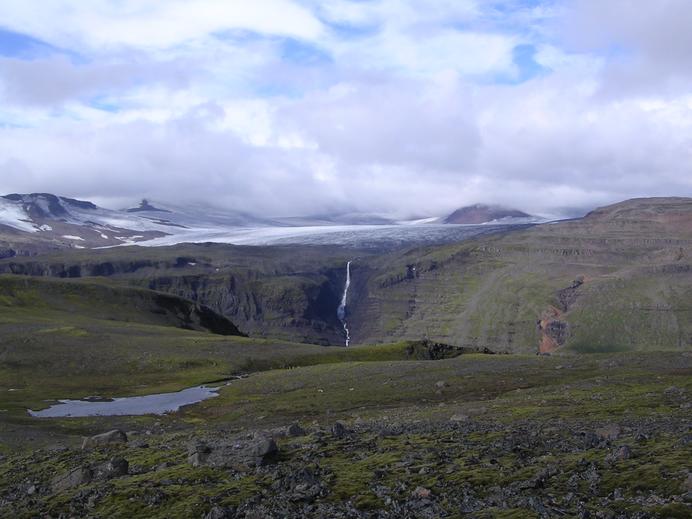 Ein Wasserfall, der vom Axarjökull in den Canyon der Jökulsá í Lóni stürzt