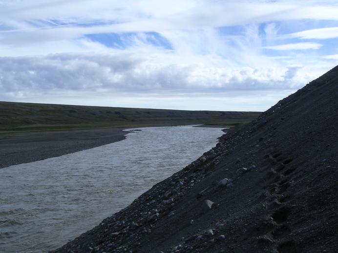 Steiler, sandiger Hang mit schöner Rutschmöglichkeit direkt in die Jökla