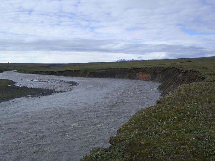 Eine Flussbiegung der Kringílsá mit den Kverkfjöll im Hintergrund
