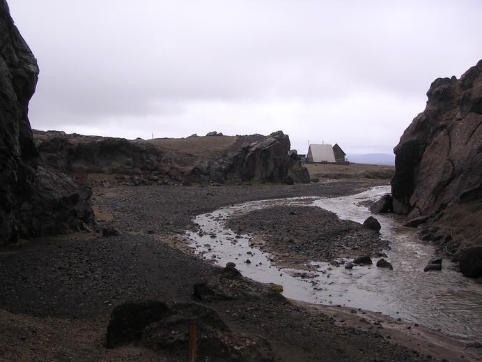 Zurück aus der Drekagíl bei den Hütten