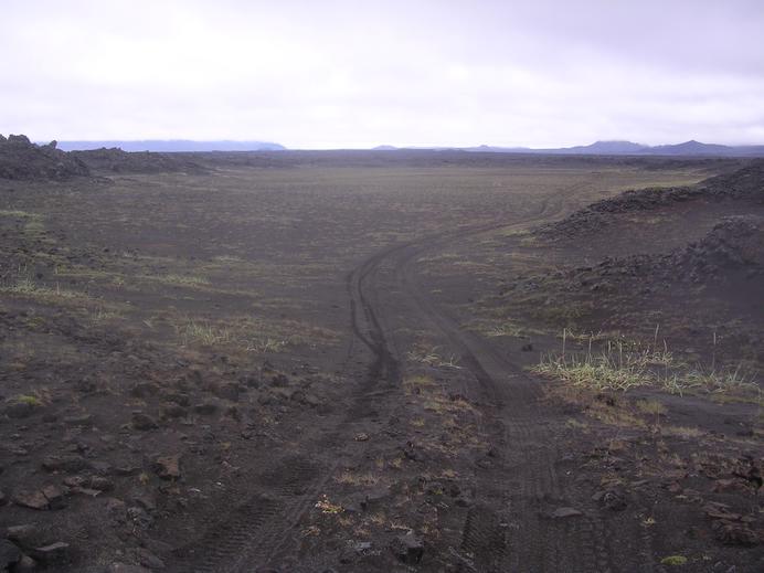 Spärliche Vegetation auf der Wüstenstrecke nördlich der Dyngjufjöll