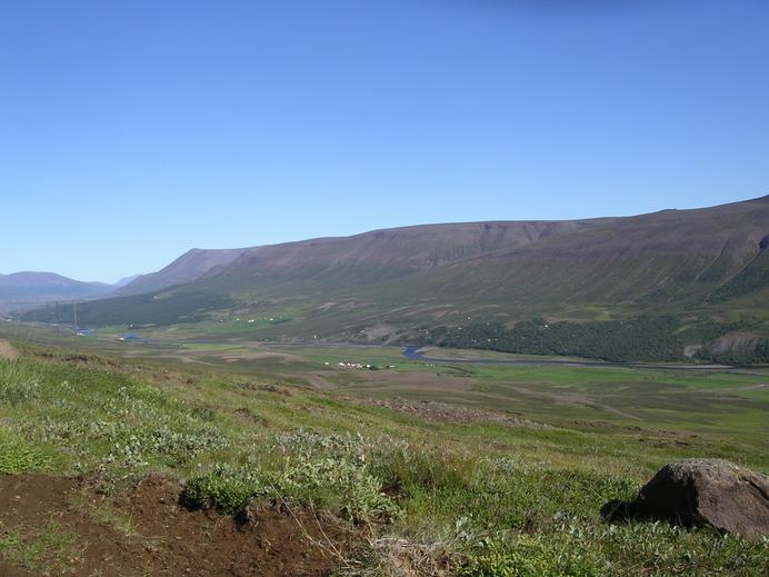 Blick ins Fnjóskadalur und auf den Vaglaskógur