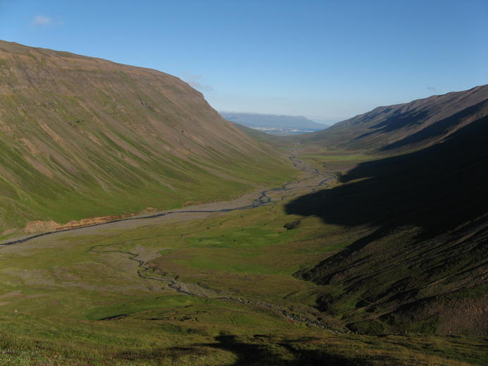 Blick das Garðsárdalur hinab in den Eyjafjörður