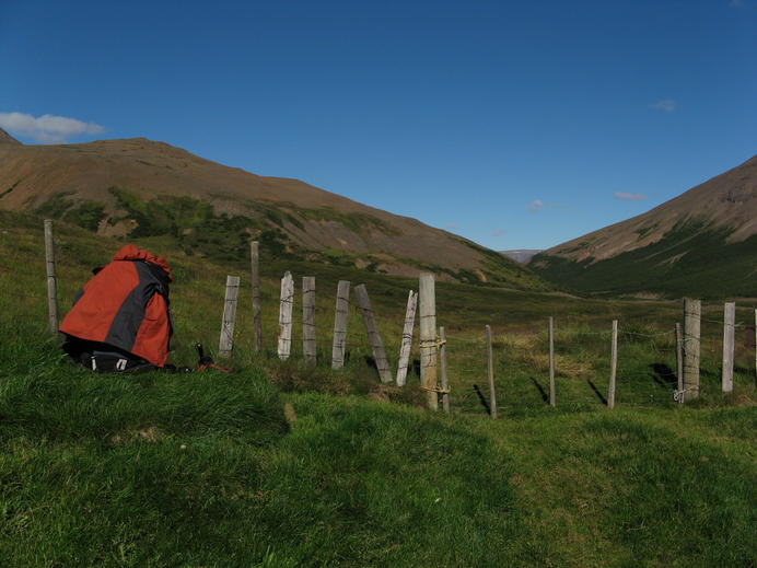 Break at a sheep fence in Bleiksmýrardalur