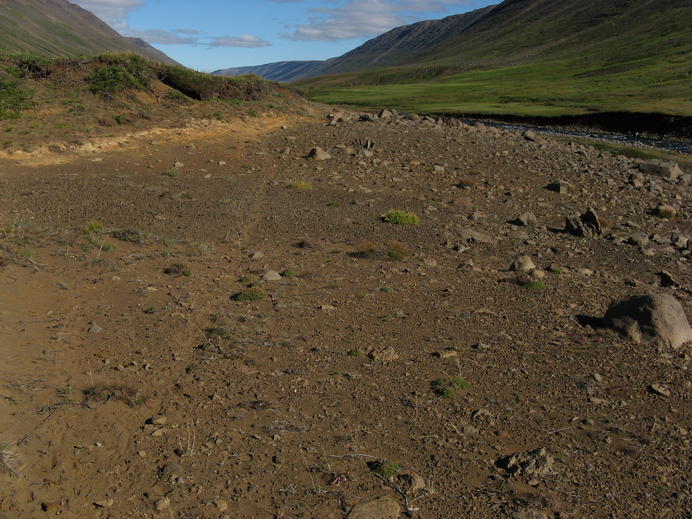 Ab der Fremri-Lambá wird die Vegetation im Bleiksmýrardalur spärlich