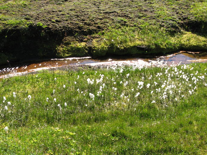 Cotton grass at a rusty red creek