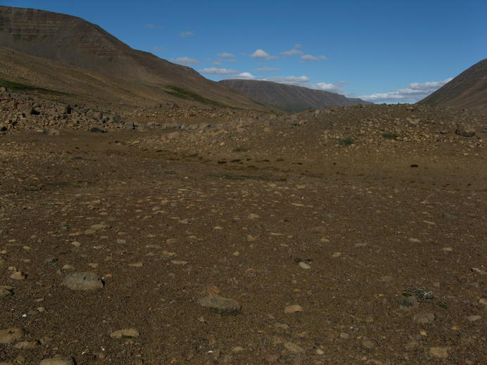 Marked path trough the stony desert in upper Bleiksmýrardalur