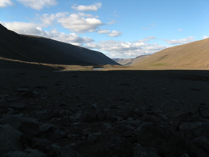 In the evening it's getting shady in Bleiksmýrardalur