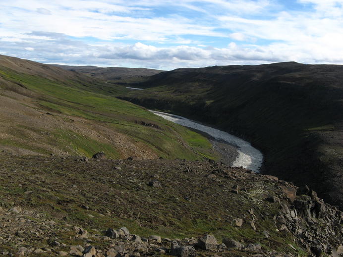 Rückblick auf die Austari-Jökulsá und Stórihvammur