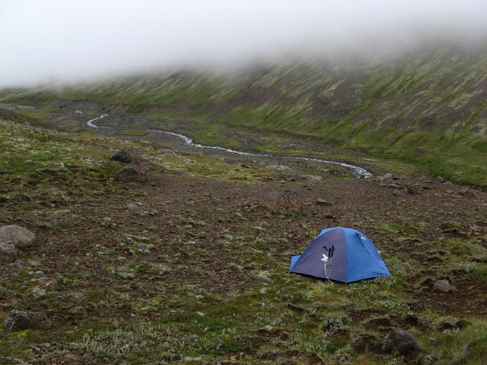 Nebel an meinem Zeltplatz im Ábærdalur