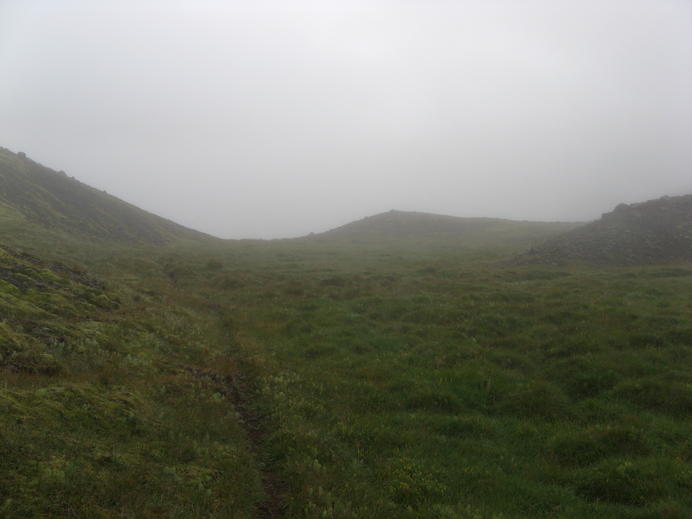 Trail through the fog in Ábærdalur