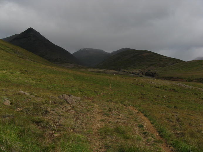 Links das Horn, daneben das Miðdalur