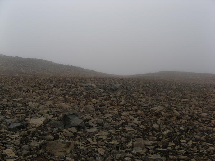 Stones and fog on the pass from Seljadalur into Suðurárdalur